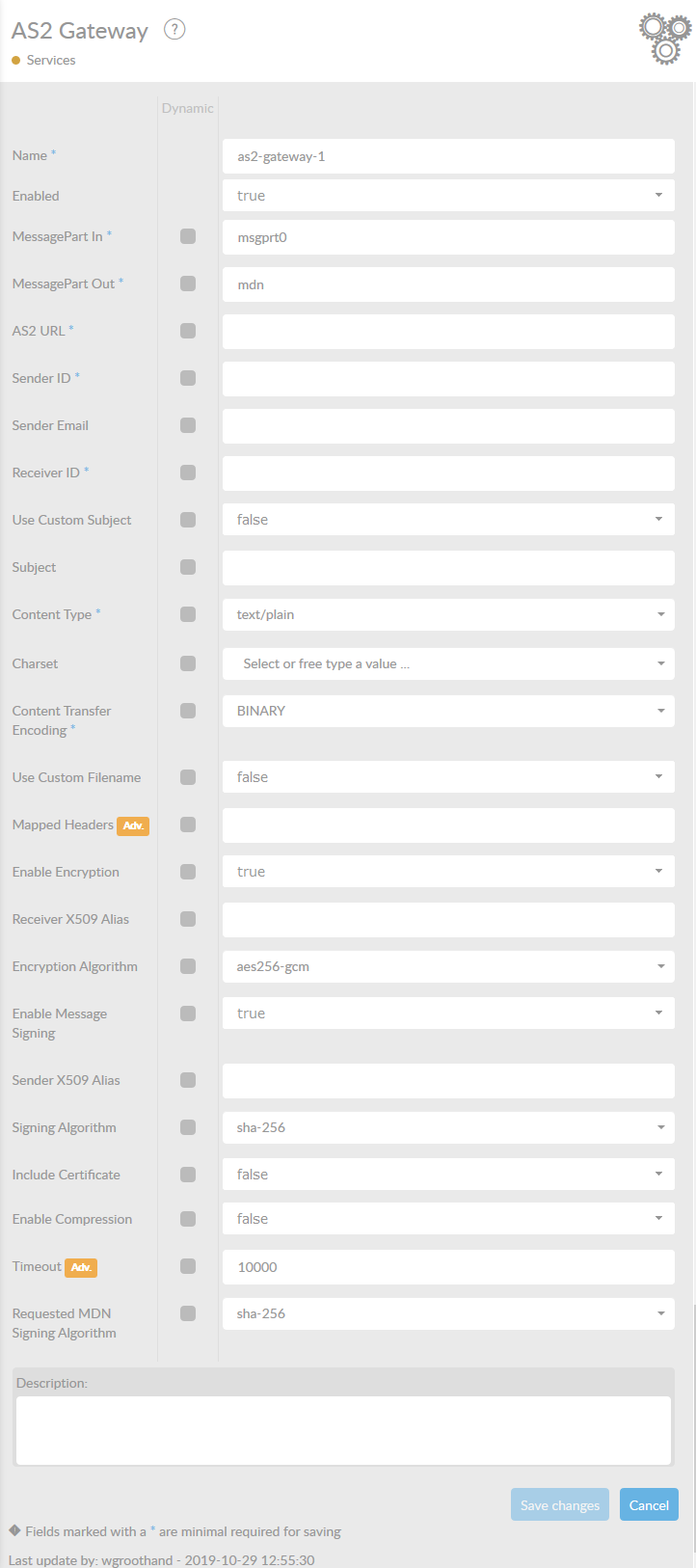 | sender ID* | The AS2 ID of the AS2 sender. |