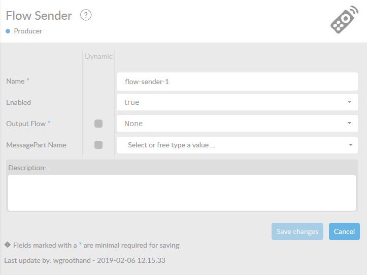 The Flow Sender is a component that can pass on a ConnectMessage or MessagePart to another Flow. This Flow could be within the same Interface, but it could also be within another Interface. This makes it possible to link several Flows to one outgoing Flow.