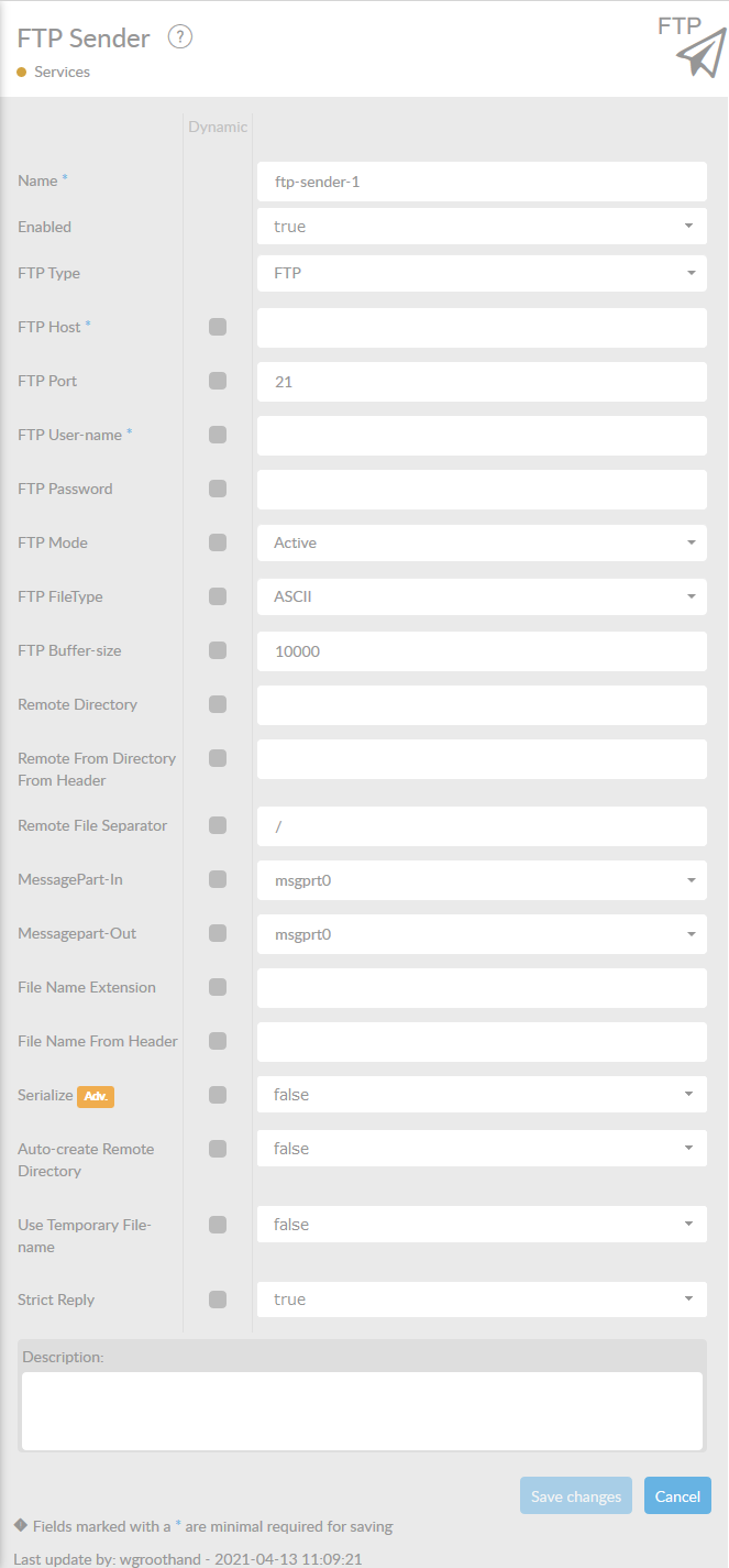 When configuring a (s)FTP(s) Producer, Service or Command Gateway you may override certain properties at runtime by specifying certain headers. The properties you can override at runtime are: