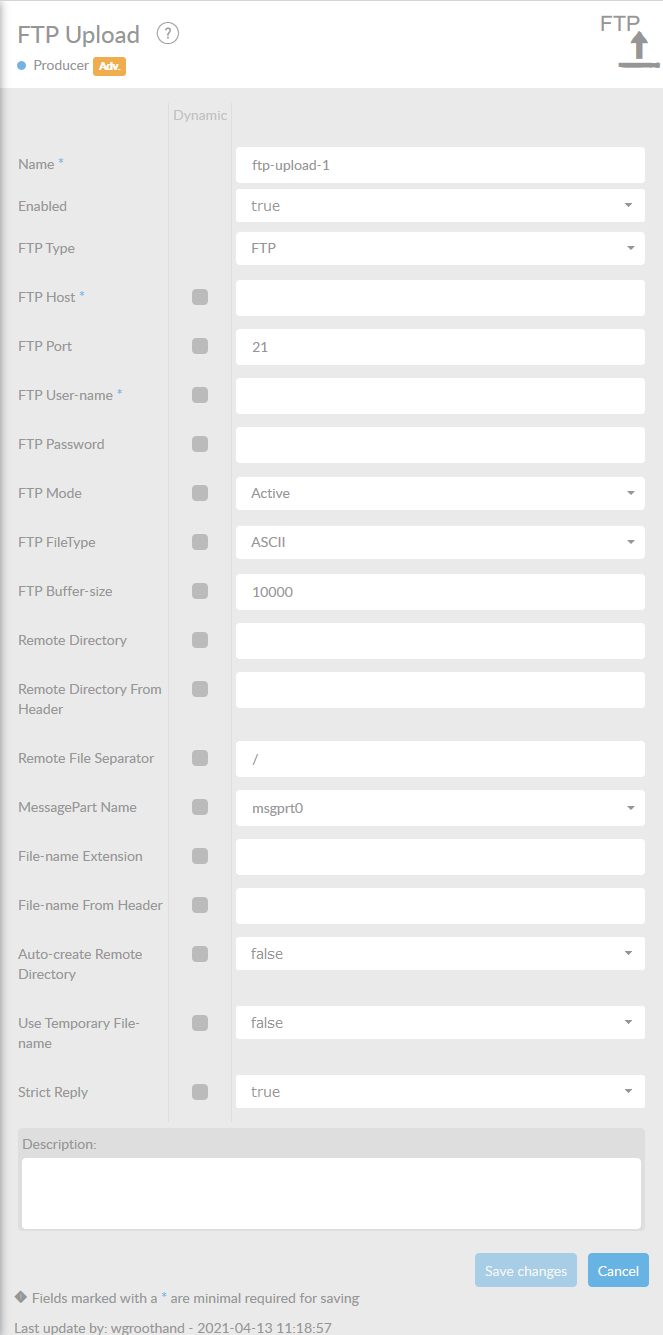 This producer writes content from the input ConnectMessage to a remote file on an FTP server.