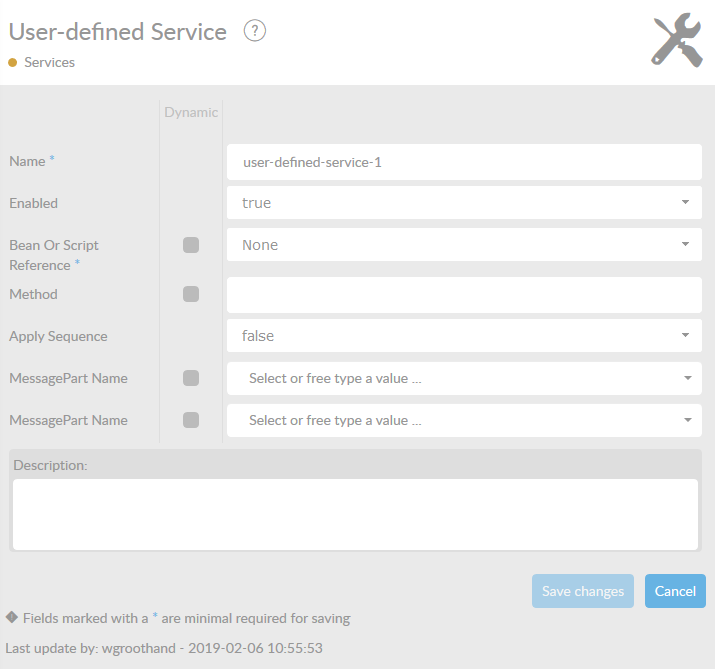 Here, you can choose an existing java bean or a script. The bean needs to be known within the corresponding interface in the interface overview. This bean has to be an implementation of a class that implements the MyESBService interface.