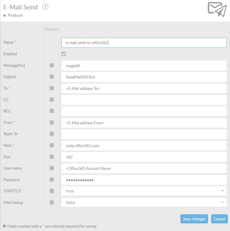 If you want to email to an Office365 e-mail account you can do this using the following settings in your producer: