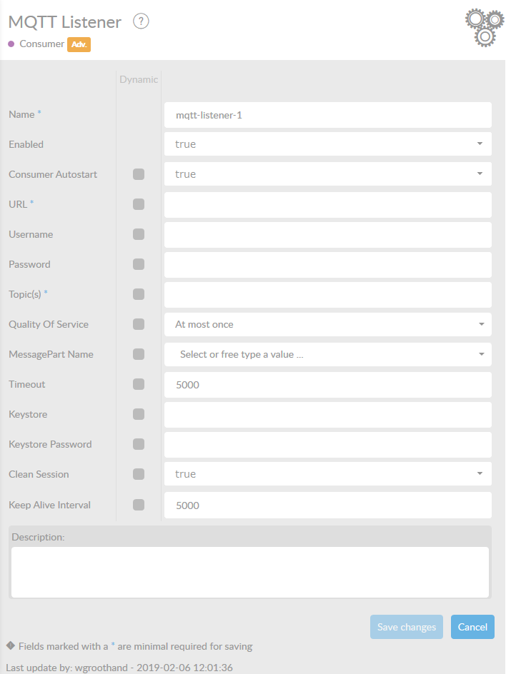| Client ID | A unique client id to connect to the broker. Default: "interfacename.flowname.componentname.clientid" |