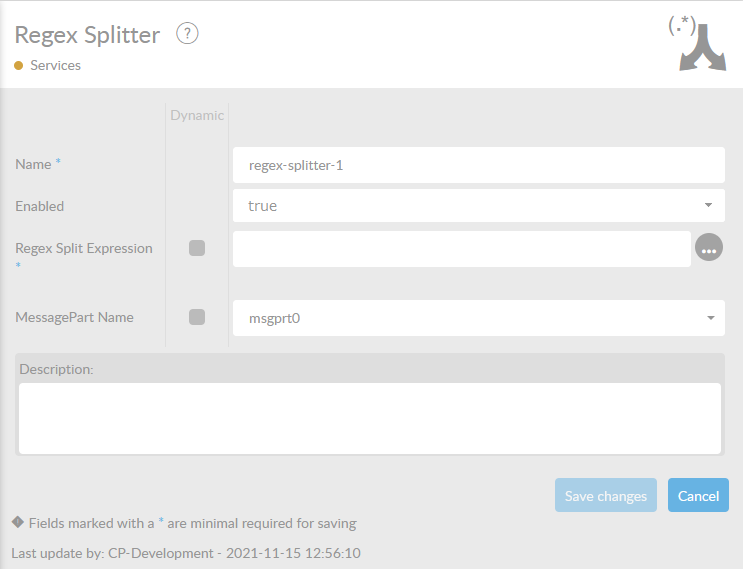The Regex splitter is a service which can split the content of a messagepart into multiple parts based on a Regex expression and output each part as a separate ConnectMessage.