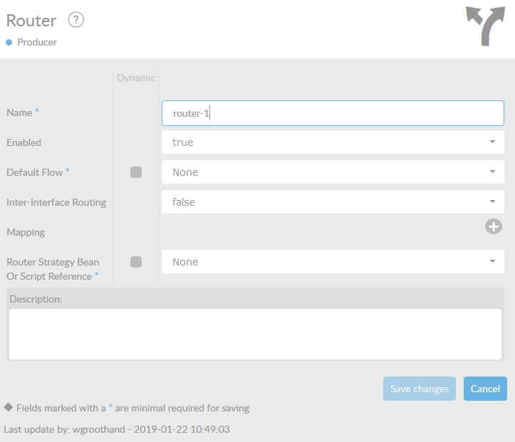 Here you can set a Routing value and refer to a Flow. By pressing At Routing, you indicate for which returned value of a routerStrategy the message has to be routed. |