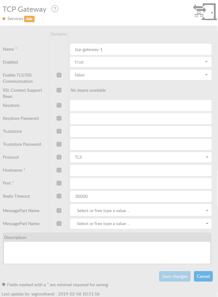| Serializer Bean Reference | A Bean reference to a Serializer Bean to be used by the TCP consumer. This Bean needs to be known within the corresponding Interface in the Interface Overview. |