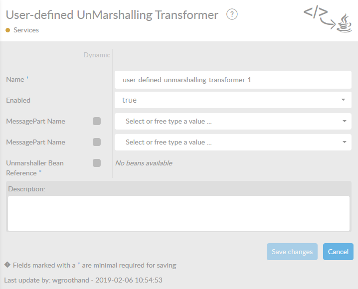 Here, you can choose an existing Unmarshaller Bean. The Bean needs to be known within the corresponding Interface in the Interface Overview. |