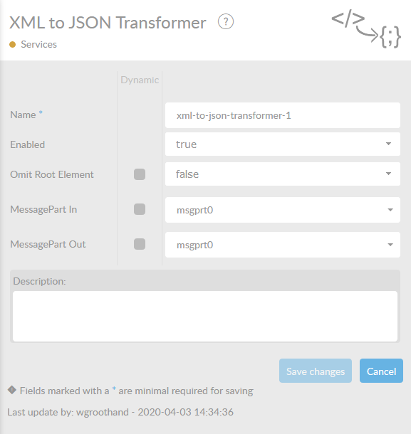 The XML to JSON transformer transforms the provided XML String to a JSON object. The result will be returned as an object instance.