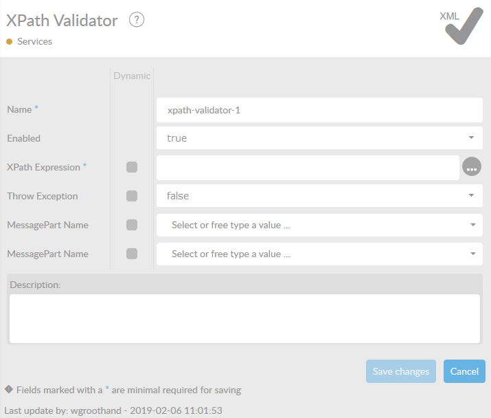 XPath expression that will be executed to validate the payload of the incoming messagepart against. |