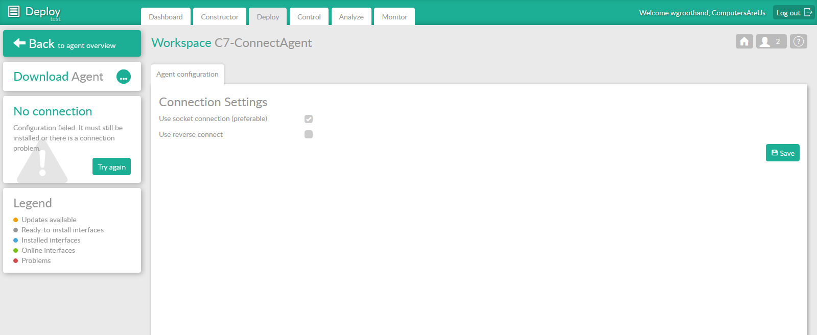 Your ConnectAgent can be downloaded from the Deploy website. Here you can preconfigure your ConnectAgent and download it with a preconfigured configuration to ease your installation. To download the agent follow the next steps.