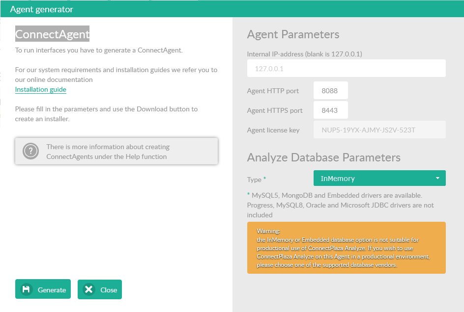 Your ConnectAgent license key. The key is generated by the system and you cannot modify it. |