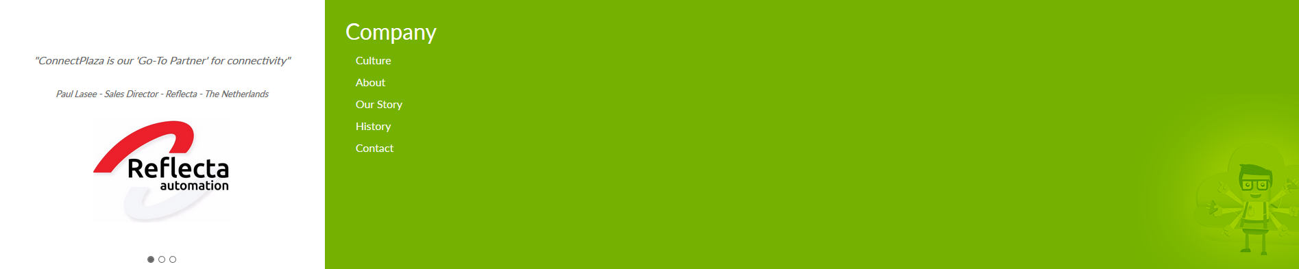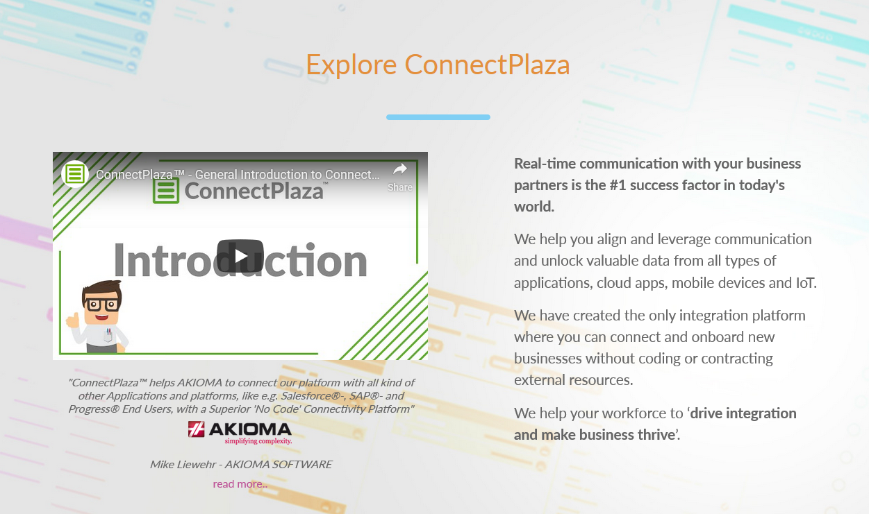 In this section you will get a short introduction of who we are and what we do at ConnectPlaza. There is an introduction movie to introduce you to our company and tell you all about us.