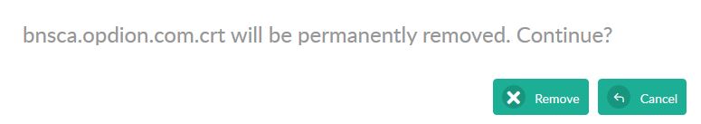 If you want to remove a certificate, select the button at the end of the row of the certificate you want to remove from the truststore. You will be asked if you are sure you want to remove the certificate permanently.