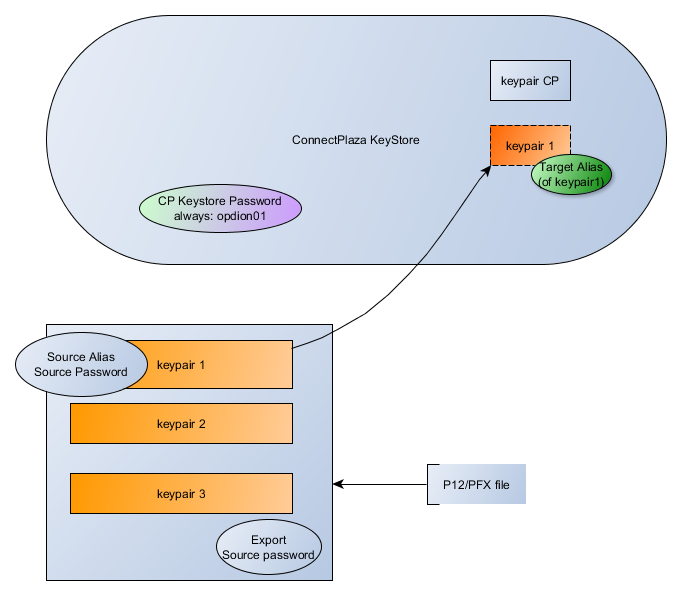 | Target key alias | Provide an alias under which to store the keypair into the ConnectPlaza Keystore. By default the alias from the provided PKCS#12 store will be used. You can change this into something which suits your needs. |