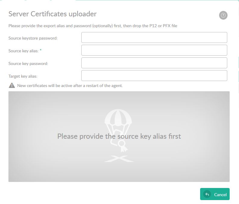 The keypair will be uploaded and imported to the ConnectPlaza keystore. After you have uploaded all the server certificates you need, restart your ConnectAgent by pressing the Restart agent button, in order to activate the new keystore.