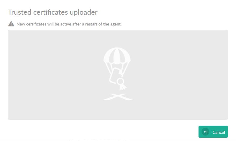 The file will be uploaded to the truststore. After you have uploaded all the certificates you need, restart your ConnectAgent by pressing the Restart agent button, in order to activate the new truststore.