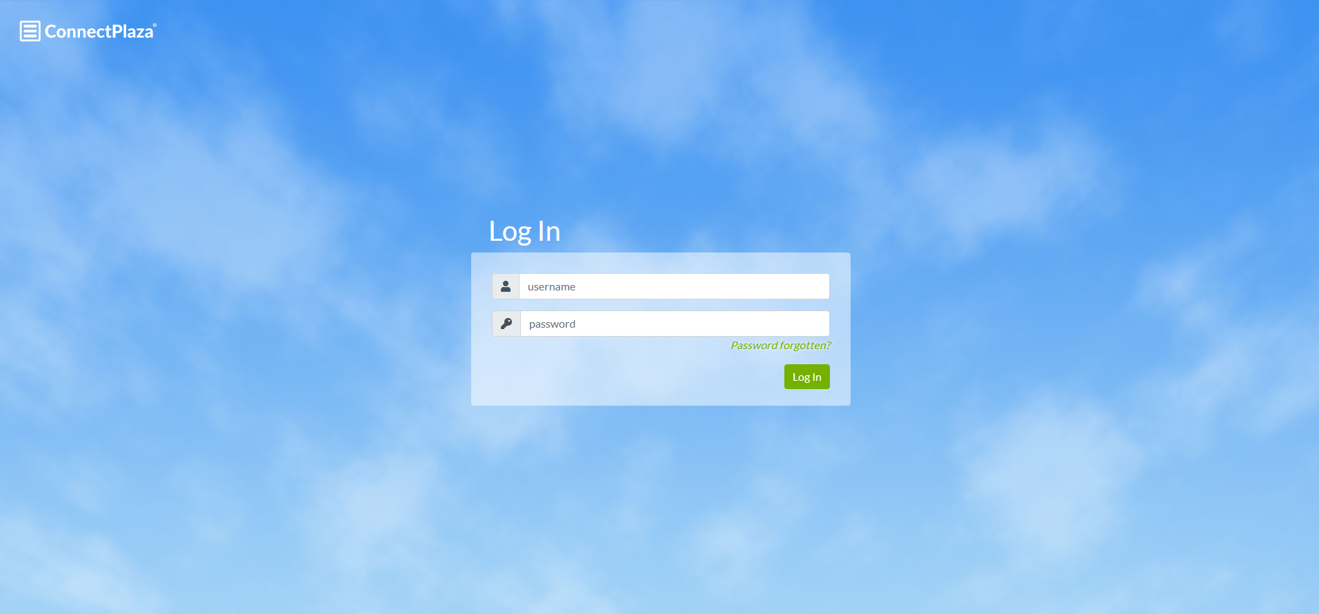 If the user is not logged in, the screen below will be showed. By entering a correct username and password, then pressing the Log In button, the user will be logged in. The ConnectPlaza Studio suite is configured as a single sign-on (SSO) application suite, so being logged in in any of the ConnectPlaza Studio applications will automatically log you in into Monitor.