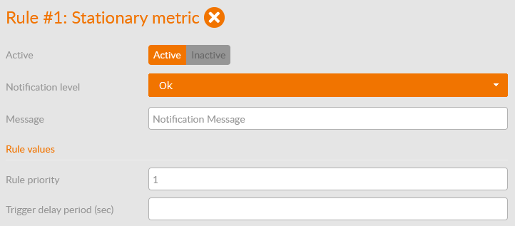 | Active | Is this rule active of inactive. You can select the button to change the value. Active (orange) is default. |