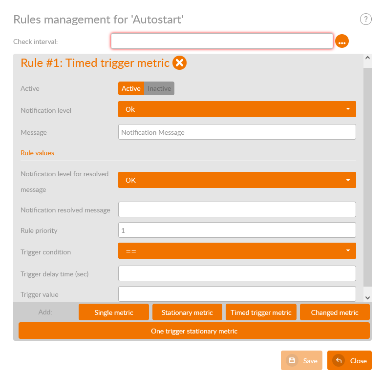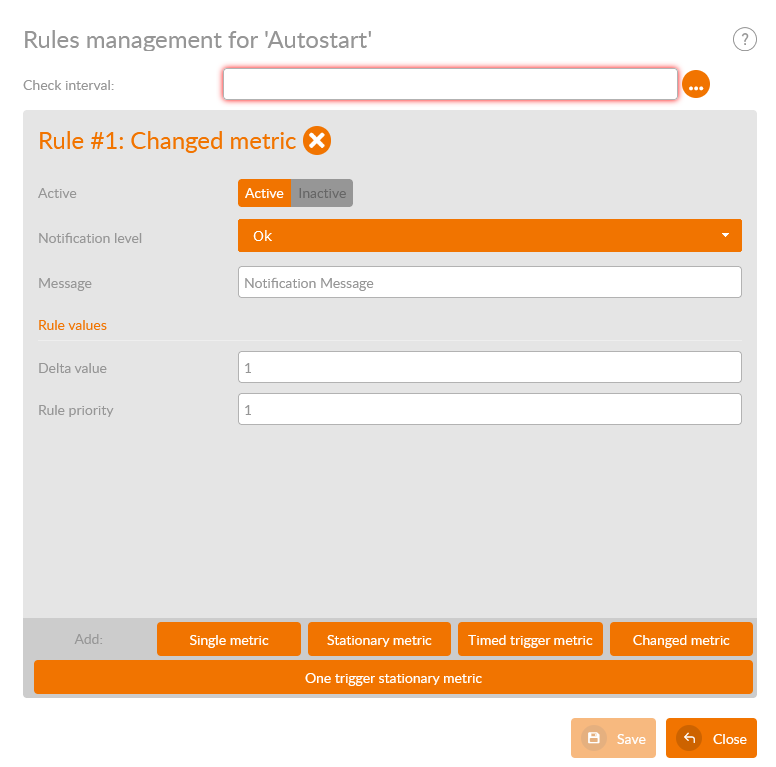 | Changed metric | Test the value of the metric over time. If the value is changed a notification is send. |