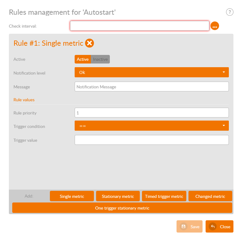 | Rule priority | Number between 1 and 99. When more than one metric notification is defined on one metric for this template, this defines the priority of the rule. |